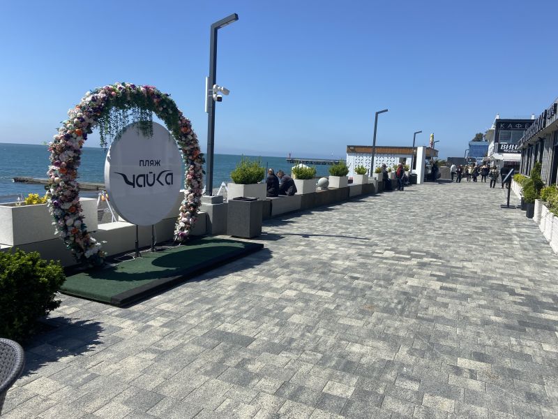 В паре минут ходьбы – городские галечные оборудованные пляжи. На побережье установлены лежаки, шезлонги, кабинки для переодевания.